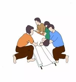 4、正确转运:搬运骨折病人的过程中,动作要轻柔,避免产生骨折端的错位或移动;对于脊柱骨折的病人,搬运中一定多人协调,保持脊柱的轴向稳定,否则容易引起脊柱错位,损伤脊髓导致瘫痪。颈椎骨折的病人,搬运过程一定要专人负责头部和颈椎,保持和躯干平行的体位,否则容易导致四肢瘫痪甚至死亡。